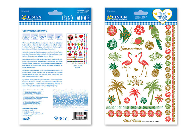 Projekt: Produktgruppe Tattoos · Tattoodesign und Verpackungsgestaltung