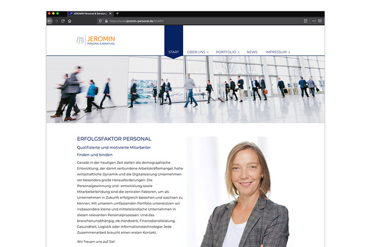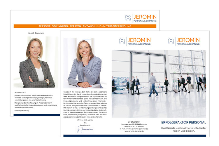 Jeromin Personal wurde Mitte 2018 von mir gegründet. Von Anfang wollte ich mich als Person und meine Leistungen professionell darstellen. Hierbei hat mich Frau Vogel umfassend beraten und mein Corporate Design so entwickelt, dass ich direkt erfolgreich durchstarten konnte.